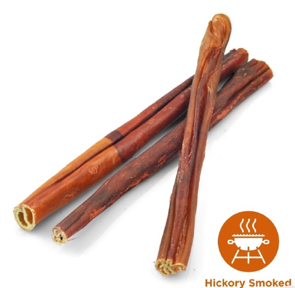 Meet our NEW 10-12 Inch Hickory Smoked Bully & Collagen Sticks. These 2-in-1 chews combine two of your dog's favorite chews: real bully stick and premium beef hide. They're rich in collagen and support dental health. These power chews are naturally smoked in our Richmond, Virginia facility. Dogs love the scent of our natural hickory smoked bully chews, and you will, too! Our Bully & Collagen Sticks last even longer than our standard bully sticks and are best suited for the toughest chewers. These 100% real bully sticks wrapped around premium beef hideare both delicious and nutritious, providing a great way to reward your power chewing dog.